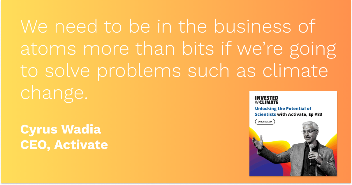 Activate’s new CEO, Cyrus Wadia, featured on climate-tech focused podcast